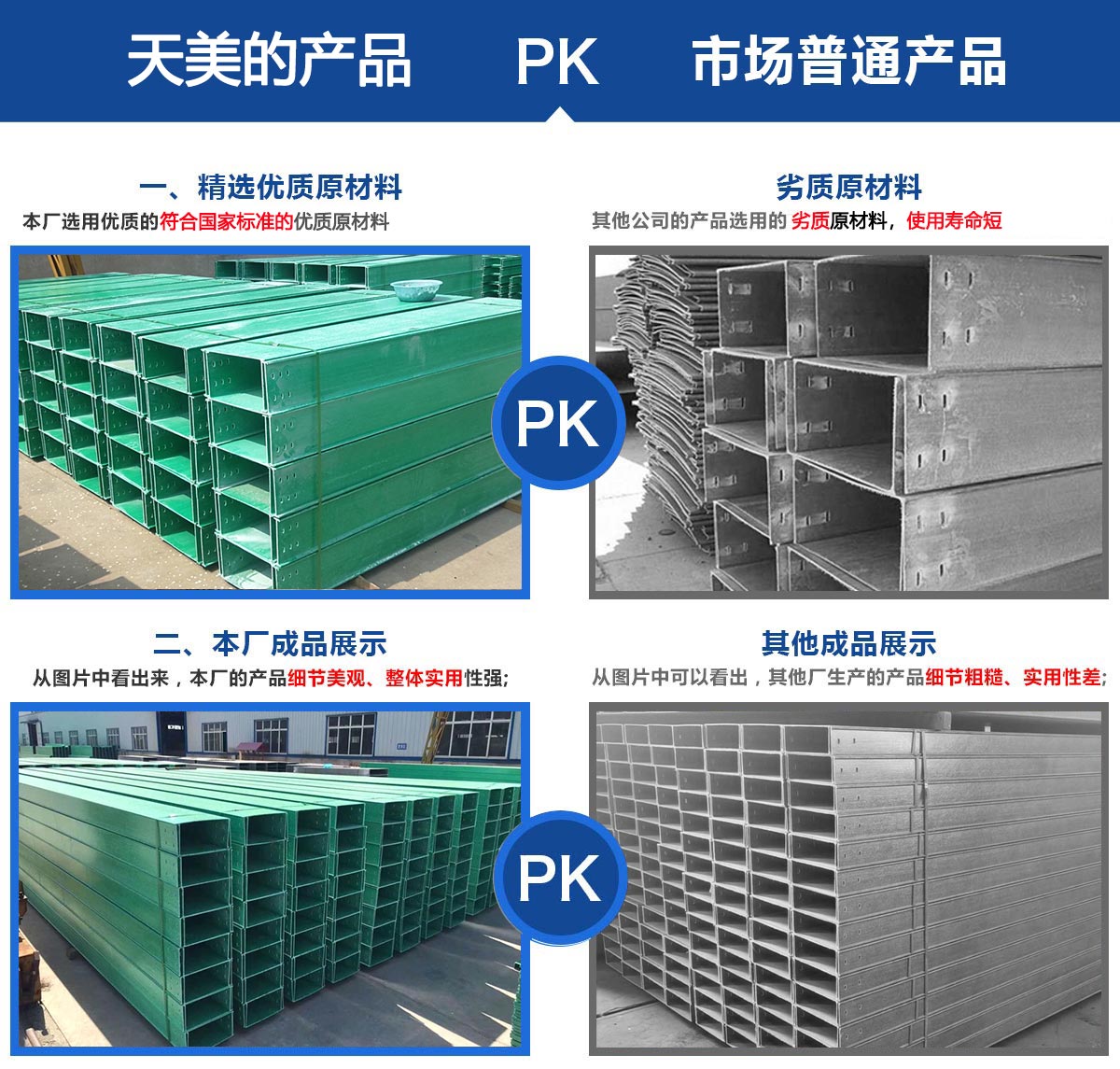 本公司主要產(chǎn)品有玻璃鋼電纜橋架、酚醛樹脂橋架、玻璃鋼除霧器、輪廓樁、防腐檁條、污水池蓋板、模壓化糞池、方形冷卻塔、圓形冷卻塔、RTM真空導入產(chǎn)品、熄焦塔除塵裝置等,公司設備較優(yōu)良,技術(shù)力量強,工人操作水平高,能夠獨立的進行玻璃鋼產(chǎn)品的制造和設計、適用于各大工程的建設。